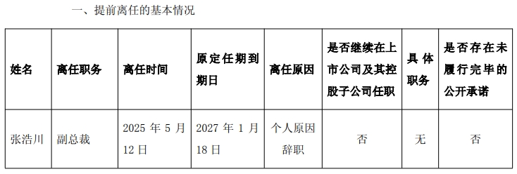 招商证券表示,张浩川先生已按照公司相关规定做好工作交接,向张浩川在担任公司副总裁期间对公司所做出的积极贡献表示衷心感谢。